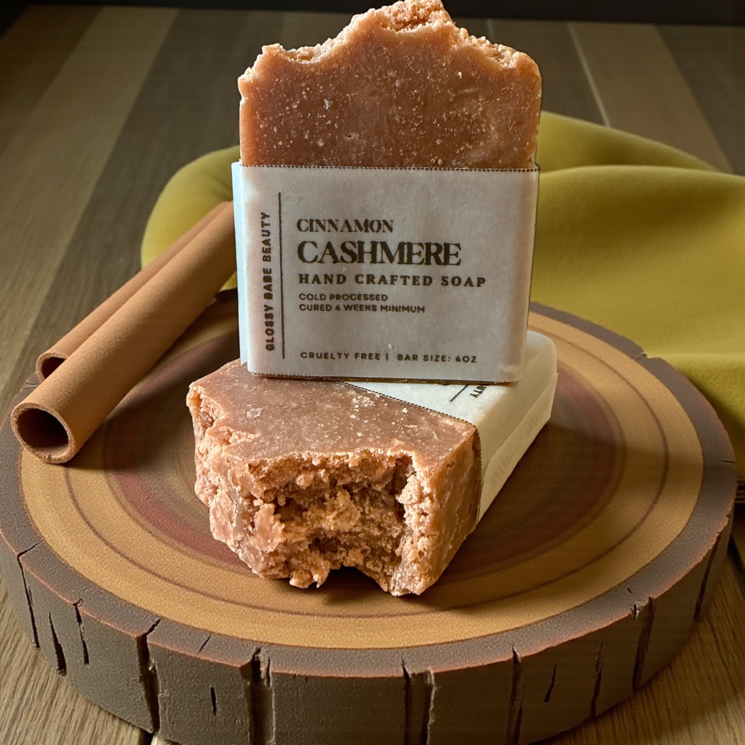 Wrap yourself in the soft, cozy luxury of our Cinnamon Cashmere cold process soap — a velvety, aromatic bar crafted with a decadent blend of nourishing oils and butters. This inviting soap features the comforting warmth of fresh cinnamon and the subtle richness of unsweetened cocoa powder gently swirled throughout, creating a beautifully textured and fragrant bathing experience.